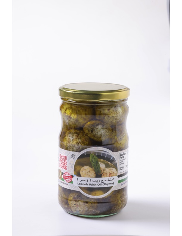 Authentic Palestinian labneh balls preserved in premium olive oil and seasoned with aromatic thyme, delivering a rich, traditional flavor. Made from fresh, natural ingredients using homemade-style methods, perfect for breakfast, appetizers, or serving with fresh bread.